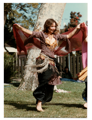 Some people call us belly-dancers, but this is a deceptive term, one that brings to mind a scantily clad woman shimmying and gyrating across the floor. Our dances are based on Middle Eastern movements and rhythms, but we draw from many other disciplines as well, from ballet and flamenco, to Native American and Polynesian. We are fusion folk dancers. We dance at festivals and fairs, weddings, parties and proms. We dance for the sheer joy of it, for the pleasure of moving our bodies through the air to the rhythm of the drums, and because it is a sacred Tantric ritual, one that joins us at the hip and the heart. We begin our ritual with a hot bath, preferably in a deep claw-foot tub. After the bath, the dancer starts assembling the multiple layers of her costume. We start with harem pants. Since these are closest to the skin, the kind of fabric they are made of is very important. It must be soft and fairly light, not too heavy, stiff or scratchy. It must feel good against your skin. I prefer cotton or silk. The color will depend on the rest of the costume. I have a dozen pairs of harem pants to choose from, in a myriad of colors. Getting dressed is like turning yourself into a piece of art- a colorful sculpture that moves. A full circle kirt goes over the harem pants. The fabric must have some weight to it so that it flares out as the dancer spins, exposing the billowing harem pants beneath.