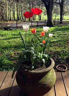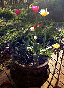 Barbara spent her last day in the world planting flower bulbs, including these tulips she planted in a big ceramic pot. "I'll never forget watching her plant these little gifts for us. A perfect reminder of her every spring".