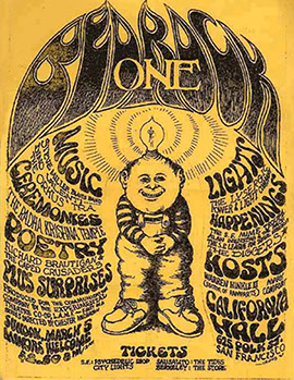 The Orkustra’s association with the Diggers was initially an outgrowth of simple proximity to one another. The old warehouse on Page Street that we used for a rehearsal studio was located directly across the street from a row of derelict wooden garages that the Diggers had procured and made into their headquarters. Above the doors of the garages was a whimsical sign proclaiming them to be “The Free Frame of Reference,” the Diggers’ free store, where second-hand clothing, blankets, kitchen utensils, and sundry household items could be had for the asking. As members of The Orkustra and some of the Diggers encountered one another on a daily basis, a casual relationship was formed. Emmett Grogan, one of the Diggers’ founding members and chief instigators, took a particular shine to The Orkustra. He liked our free-form musical style and devil-may-care attitude, being so much like his own nature, and invited us to play the first of the free concerts in the Panhandle.