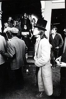 The process of finding musicians to join up with me for this little adventure began with handwritten notices that I prepared on 5 by 8 inch cards using pens of assorted colors to attract the attention of passersby. With these I let it be known that the “world’s first psychedelic electric symphony orchestra” was “now forming,” and that musicians of any stripe may apply, “all types of instruments welcome.” Interested musicians were advised to “see the guy in the top hat with the white dog on Haight Street,” or to leave their contact information on my message board in front of the Straight Theater. Bulletin boards were very commonplace in those days, and I posted the notices on every one of them that I could find—in the Psychedelic Shop, the Haight Levels, the Digger’s free store, several local markets, the Donut shop, and on my own message board in front of the Straight Theater—as well as in the windows of a few shops and restaurants I frequented regularly. The response was virtually instantaneous and surpassed my wildest expectations.