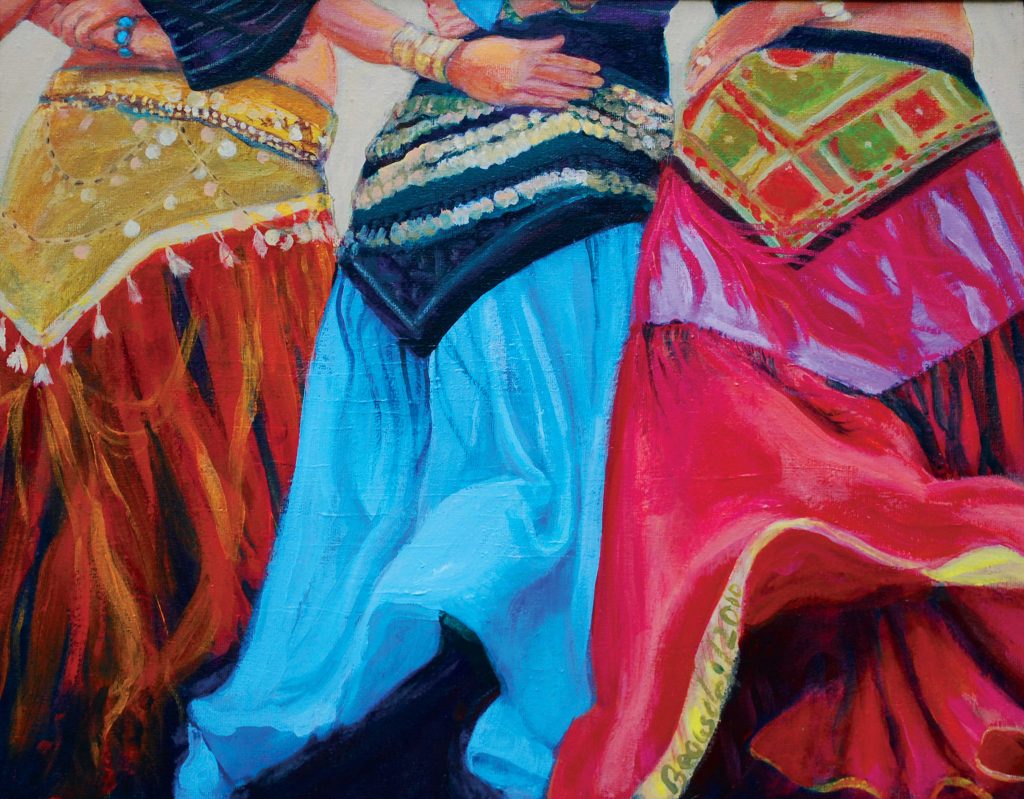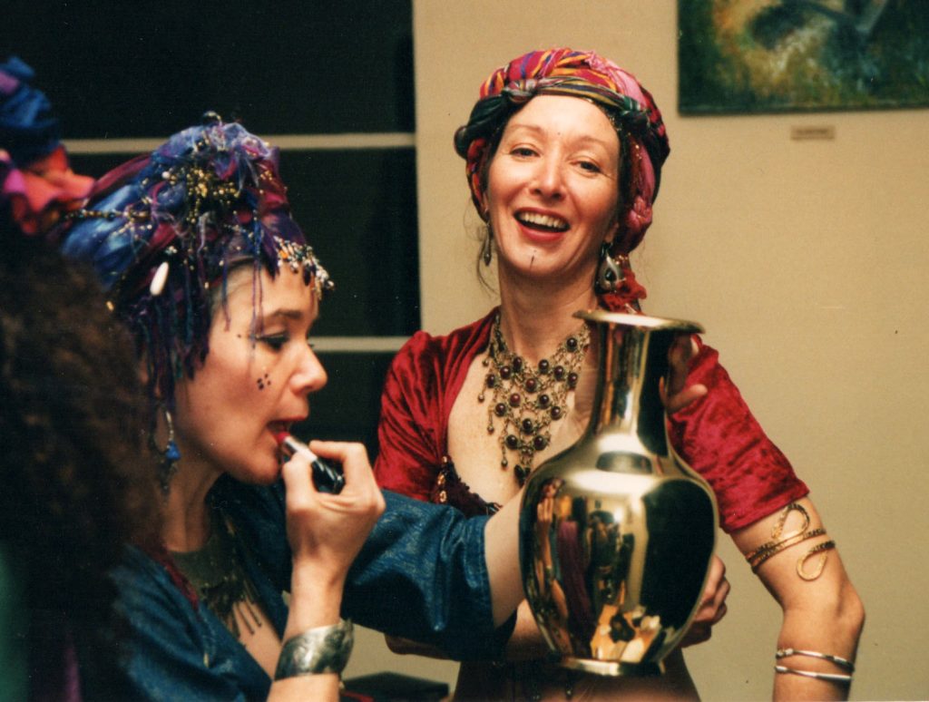 There is a sense of vitality and nourishment that comes from dancing.  The more you allow your body to dance, the more it loves you.  The movements provide an internal massage for all your glands and organs.  They stretch and strengthen muscles, keep the blood circulating throughout your body and are a source of grounding.  They let your body know it’s good to be alive.  We may enter the studio feeling tired after a long day, but when we leave after a night of dancing, we are revitalized (and often ravenously hungry!) Pasha, one of our drummers, says that the dance has brought new passion and vitality to his relationship with his wife.  Those of us with partners know this to be true.  A woman’s body becomes enlivened when she dances.  As the oxygenated blood in the body circulates, it activates all the cells in the body.  Some of the movements of the dance, particularly those involving the hips and pelvis, are much like the movements of sex.  Once the juices start flowing, it is a natural progression from dancing and drumming to lovemaking.